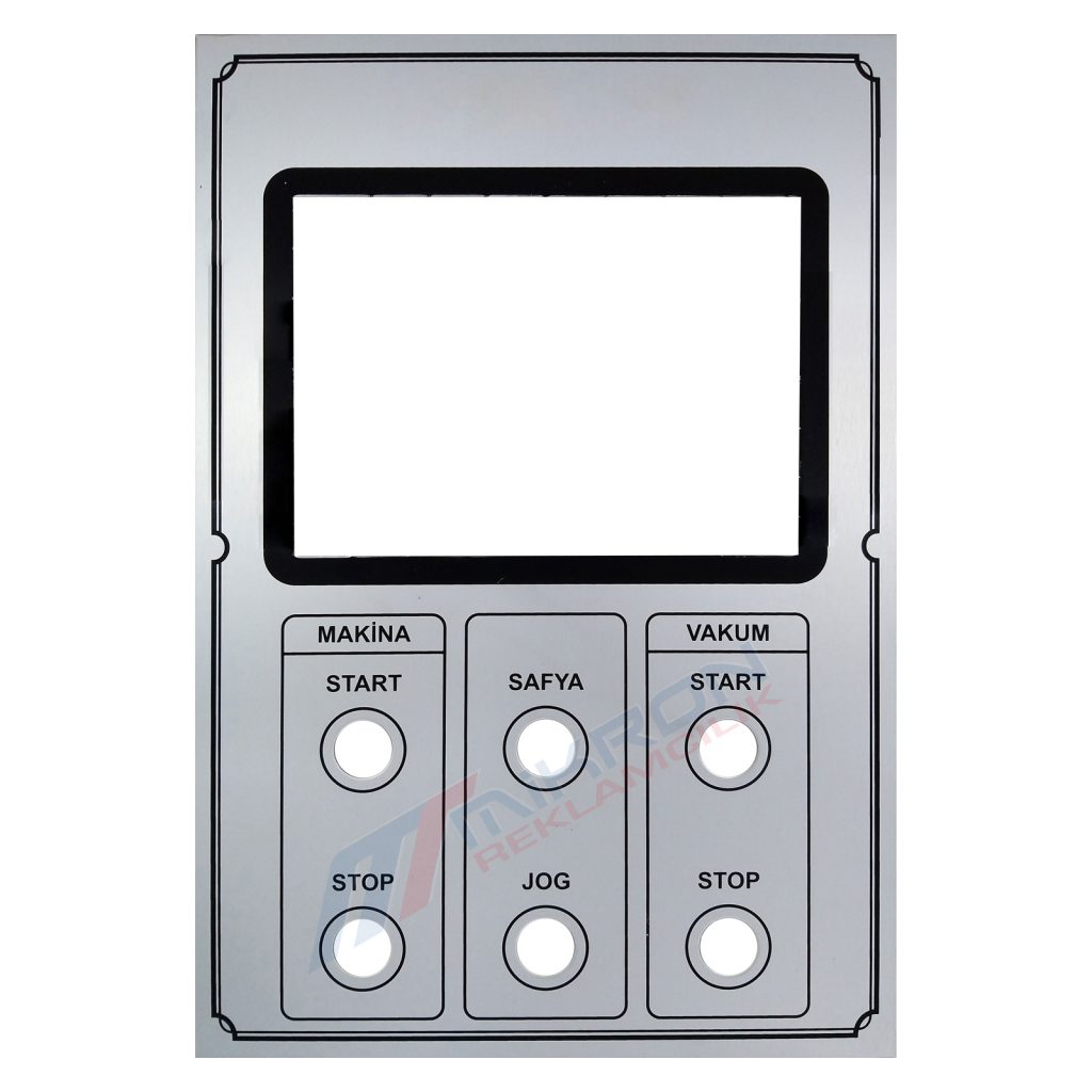 Kumanda Panelleri ; genel olarak alüminyum, paslanmaz, polikarbon, pvc,