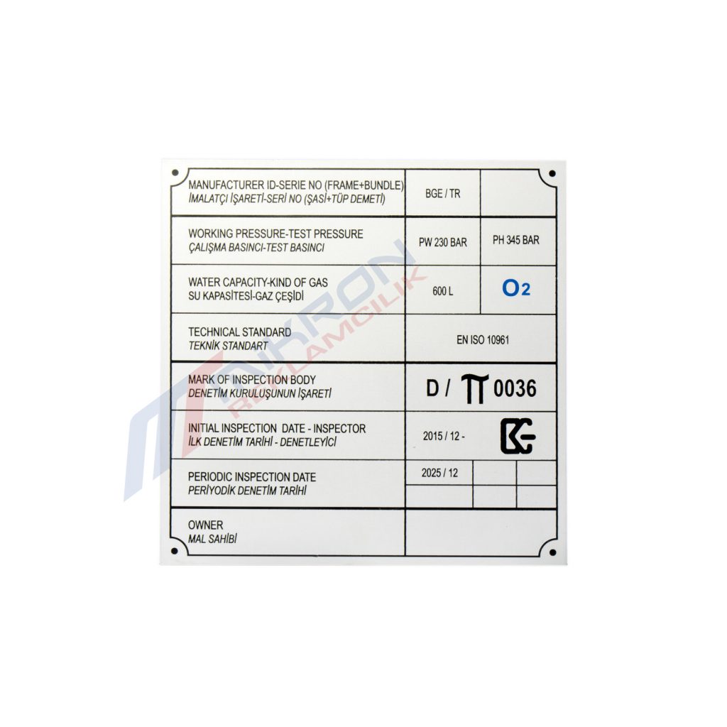 üretim yılını, seri numarasını, üretici firmanın bilgilerini içerisinde barındırır.