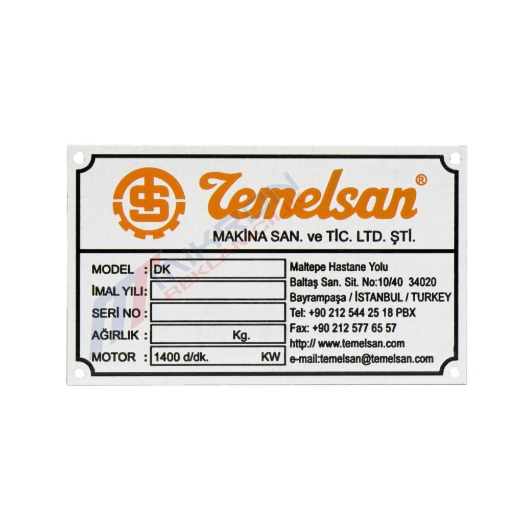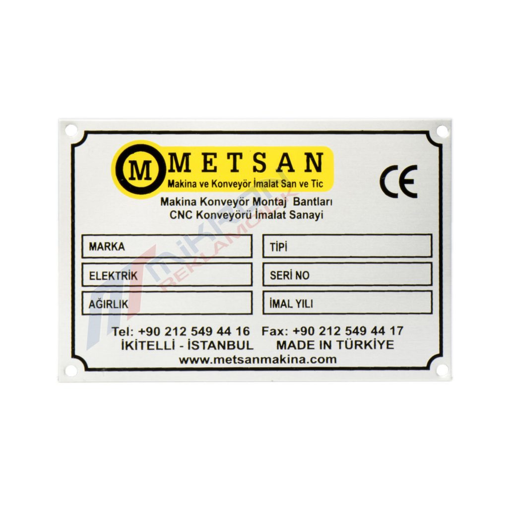 1.) Metal Etiketler farklı farklı sektörlerde imal edilen makinelerin üzerinde